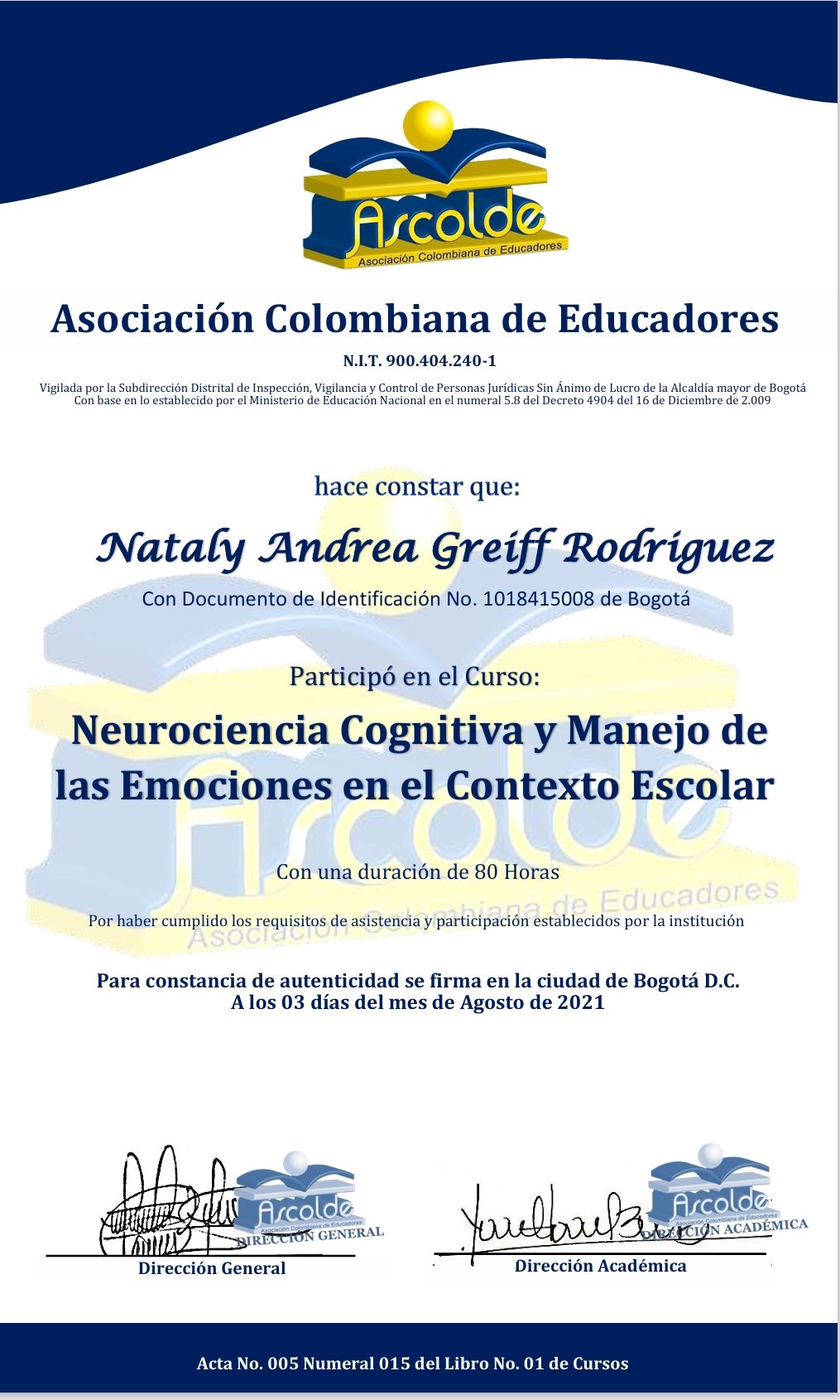 - Diplomado en Ascolde en neurociencia cognitiva y manejo de las emociones en el contexto escolar (Bogota 2021)-