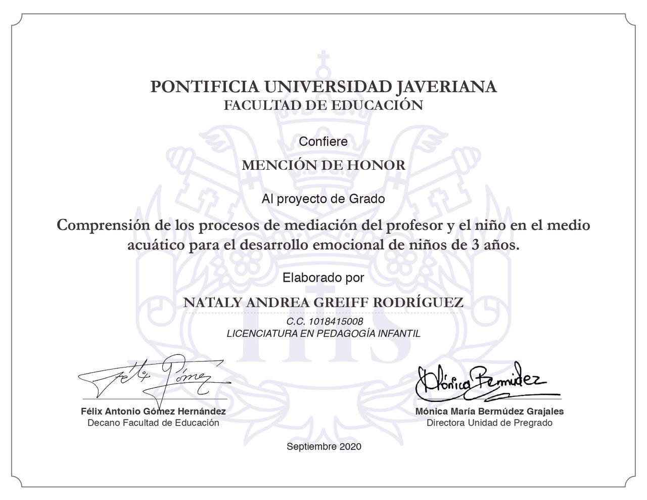 - Pontificia Universidad Javeriana (Bogota D.C 2020)